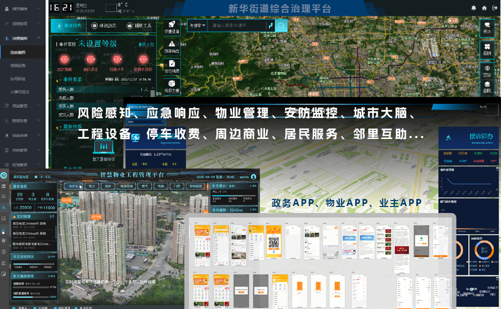 建构于对号智慧物联开发平台、对号智能识别平台系统、对号三维轻量化平台系统的基层综合治理系统,涵盖社区物业、商业、设施、安全、党建、应急于一体的社区综合治理系统