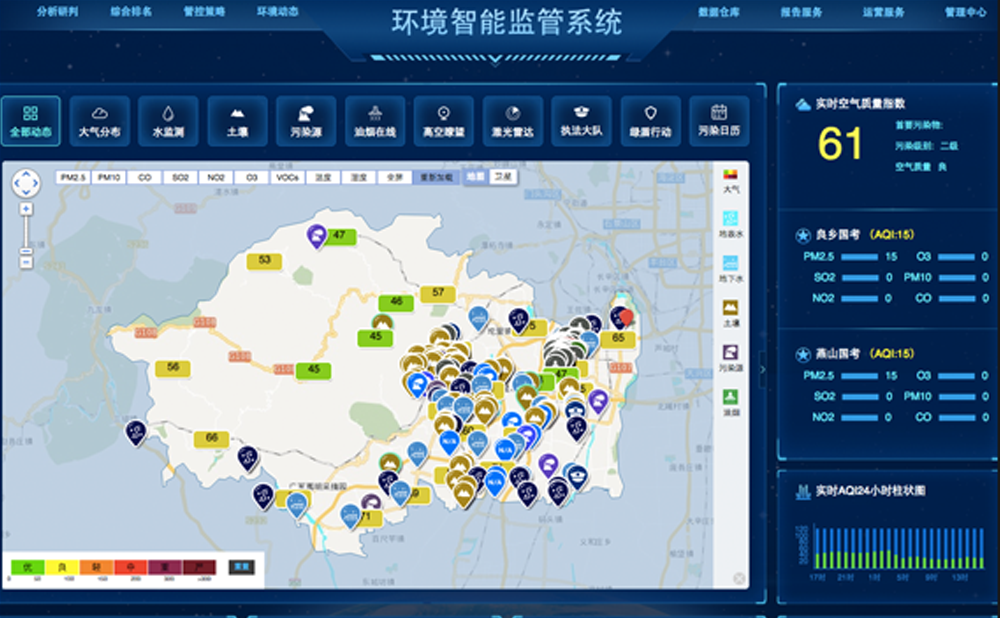 《对号智慧生态环境保护系统》在区域环境治理的典型应用,综合统管水、气、土全态环境问题,接入多种物联网设备、传感器、摄像头、遥感、无人机等实现区域环境综合监管与治理